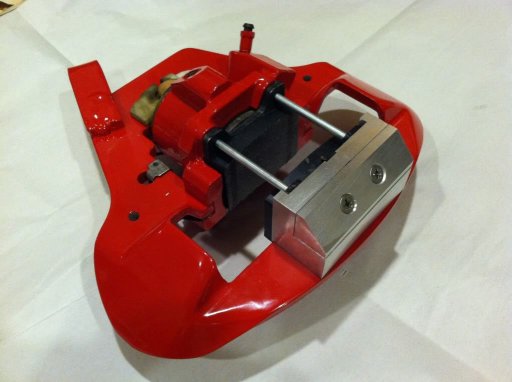 For our brake kits that we sell, we use the stock rear brake caliper for the parking brake. Many people would ask why would we do that. Our answer is simplicity. Our parking brake kit that we sell in conjunction with our brake kits bolt up to the other side of your upright on the rear.