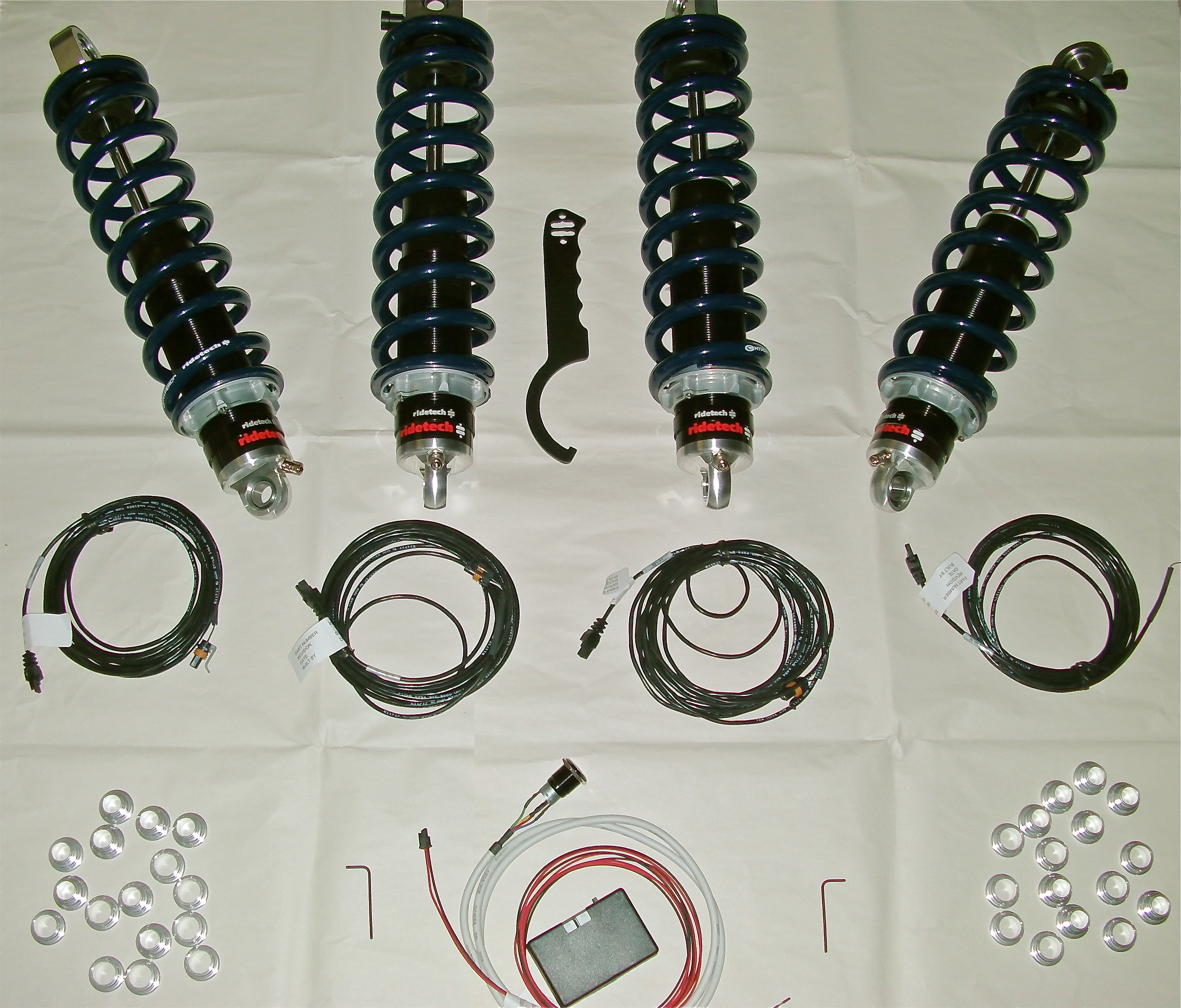Pantera Coilover Electronically Adjustable Performance Shock. Made in the USA by RideTech also known for their outstanding Air Ride suspension products. This shock was produced via a joint effort between Fox Shocks and RideTech. All spacers included for a bolt on shock for your Pantera. These use the same technology used in the Z06 Corvette. A simple press of a button for Sport mode or soft comfort mode!